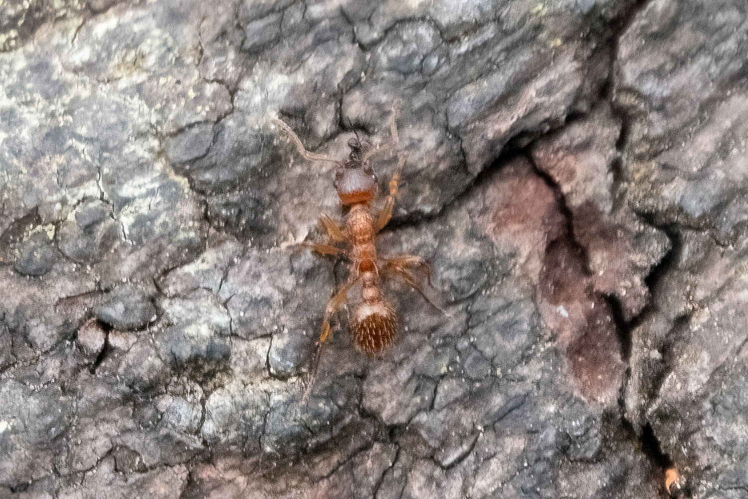 The Red Ant is commonly found in gardens under stones or logs. They can sting. These were found in oak old log on the Tumbleton Lake walk. Active throughout the year, but winged adults swarm in late summer.