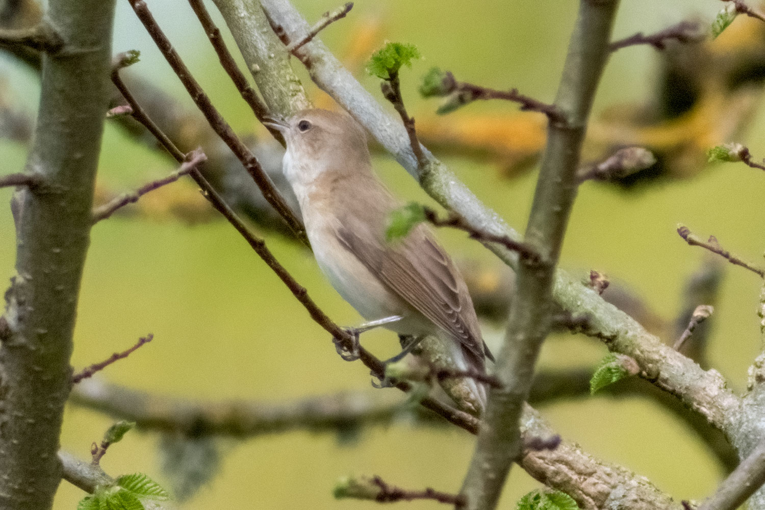 The garden warbler is not the easiest of birds to see. They are very drab, in fact they are noted for having no distinguishing features at all. They tend to skulk in foliage for long periods singing, then quickly moving to another perch where they vanish and start singing again. The best way to identify them is their song - a long rambling, flowing, bubbling, scratchy warble. This one was actually singing out in the open, along the river walk, not far from the bridge.